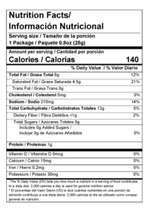 Cornmeal, Vegetable Oil (Palm Olein / Soybean), Spicy Seasoning (Salt, Natural Flavours, Onion Powder, Whey Powder, Monosodium Glutamate [Flavour Enhancer], Corn Maltodextrin [Flavour Enhancer], Sunflower Oil, Corn Syrup Solids, Artificial Colours (Red 40 Lake, Yellow 6 Lake, Yellow 5 Lake), Garlic Powder, Paprika, Palm Oil, Spices, Disodium Inosinate [Flavour Enhancer], Disodium Guanylate [Flavour Enhancer], Artificial Flavours, Tocopherols [Flavour Enhancer], Silicon Dioxide [Anticaking agent]), FD&C Yellow 6.