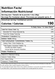 Corn Flour, Vegetable Oil (Palm Olein / Soybean), Cheese Flavour (Salt, Natural Flavours (including milk), Maltodextrin [Flavour Enhancer], Onion Powder, Monosodium Glutamate [Flavour Enhancer], Garlic Powder, FD&C Yellow Lake 5, Spices, Paprika Powder, Citric Acid [Preservative], FD&C Red Lake 40, FD&C Yellow Lake 6, Disodium Inosinate [Flavour Enhancer], Disodium Guanylate [Flavour Enhancer], Sunflower Oil, Silicon Dioxide [Anticaking Agent]), FD&C Yellow 6.